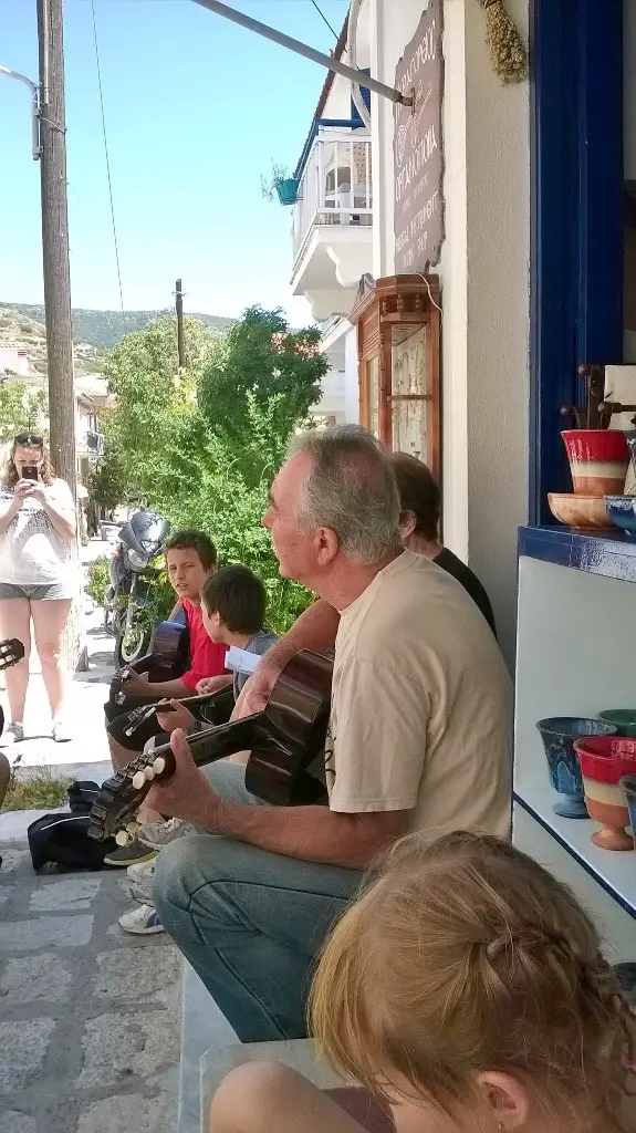 „Ich weiß nicht, wie es Ihnen geht. Ich reise seit 10 Jahren mit meinem Mann und meiner Schwester nach Samos. Immer wenn ich aus dem Flugzeug steige, fühle ich mich wie zu Hause angekommen.“, sagte sie mir mit einem verzückten Gesichtsausdruck bei einer Tasse Tee vor dem Geschäft des Bouzoukibauers Yannis in Pythagorio.