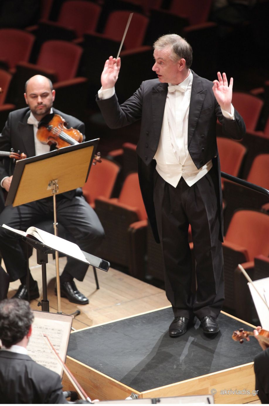 Konzert im Rahmen der Zusammenarbeit mit dem Athener Staatsorchester „Bekannte und Unbekannte Schätze“ III statt. Es werden: Ouvertüre, Scherzo und Finale, op. 52 von R. Schumann, Violinkonzert, op. 15 von B. Britten, mit der Teilnahme der international bekannten Violinistin Tianwa Yang (Solistin), 7. Sinfonie A-Dur op. 92 von L. van Beethoven unter Leitung von Stefanos Tsialis (Foto) gespielt. 20.30 Uhr.