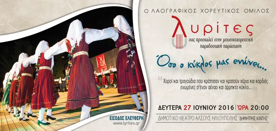 Ganz nach dem Motto der Tanzveranstaltung: „Solange uns der Kreis verbindet…“ geben sich Kinder und Erwachsenen die Hände und tanzen quer durch die griechische Tradition. Getanzt wird am 27. Juni, um 20 Uhr , im offenen Theater „Alsou Ilioupolis – Dimitris Kintis“.