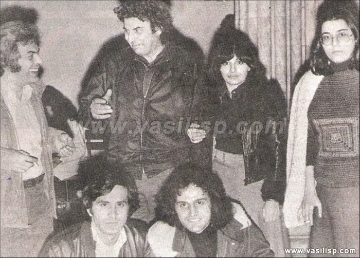 Unser Foto (© www. vasilisp.com) zeigt Papakonstantinou mit Manos Loizos, Mikis Theodorakis, Haris Alexiou, Maria Farantouri und Giorgos Dalaras. Das Foto entstand vor einem Konzert nach der Militärdiktatur.