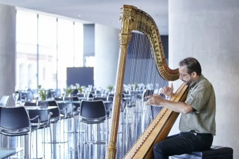 Vom 6. bis 30. Juni kann man im Restaurant des Akropolismuseum den melodischen Klängen von Thodoris Matoulas lauschen. Von Montag bis Donnerstag zwischen 13 und 16 Uhr bespielt der Harfenist die Gäste zum Mittagstisch oder Kaffee und Kuchen. Matoulas ist Mitglied des Orchesters der zeitgenössischen Musik und unterrichtet am Konservatorium in Athen.
