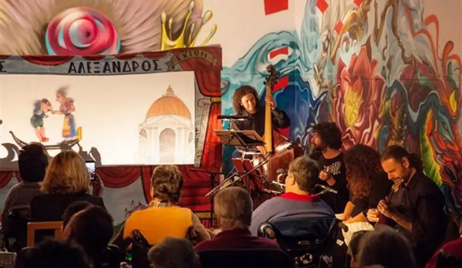 Die erfolgreiche Schattentheater-Aufführung über die Rückkehr von Karagiozis in sein Heimatland wird nun, nach einer Reihe von Auftritten im vergangenen Jahr, fortgesetzt.