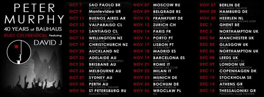Peter Murphy, der aufgrund seiner wiedererkennbaren Stimme, seines markanten Auftretens und seiner Verdienste um den Gothrock auch „Godfather of Goth” genannt wird, Daniel Ash, David J. und Kevin Haskins wagen 40 Jahre nach der Gründung 1978 ein internationales Comeback und werden mit Hits aus ihrem ersten und preisgekrönten Studioalbum „In the Flat Field“ aus dem Jahr 1980 die Bühnen rocken.