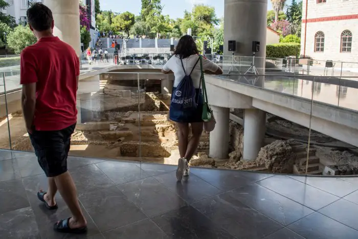 Auf einer Ausgrabungsfläche von 4.000 Quadratmetern werden u. a. Häuser, öffentliche Bäder, Werkstätten sowie Straßen aus der Spätantike sichtbar. Der Alltag der damaligen Bewohnerinnen und Bewohner Athens soll durch ausgesuchte Funde aus der Grabung, aber auch durch Informationstafeln veranschaulicht werden. Tauchen Sie ein in die unbekannte antike „Unterwelt“ des Akropolismuseums!