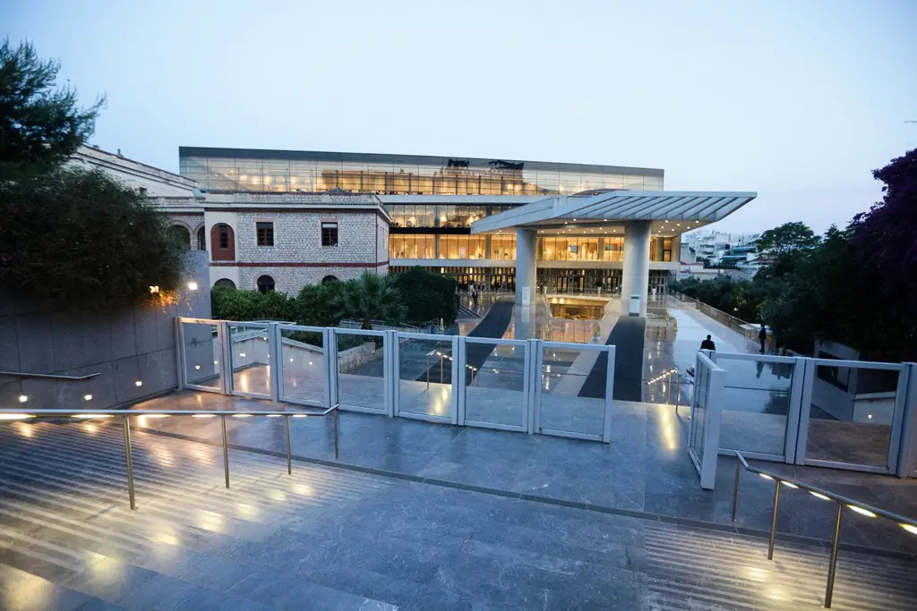 Auf dem Foto (© Eurokinissi) sieht man den äußeren Eingangsbereich des Akropolismuseums.