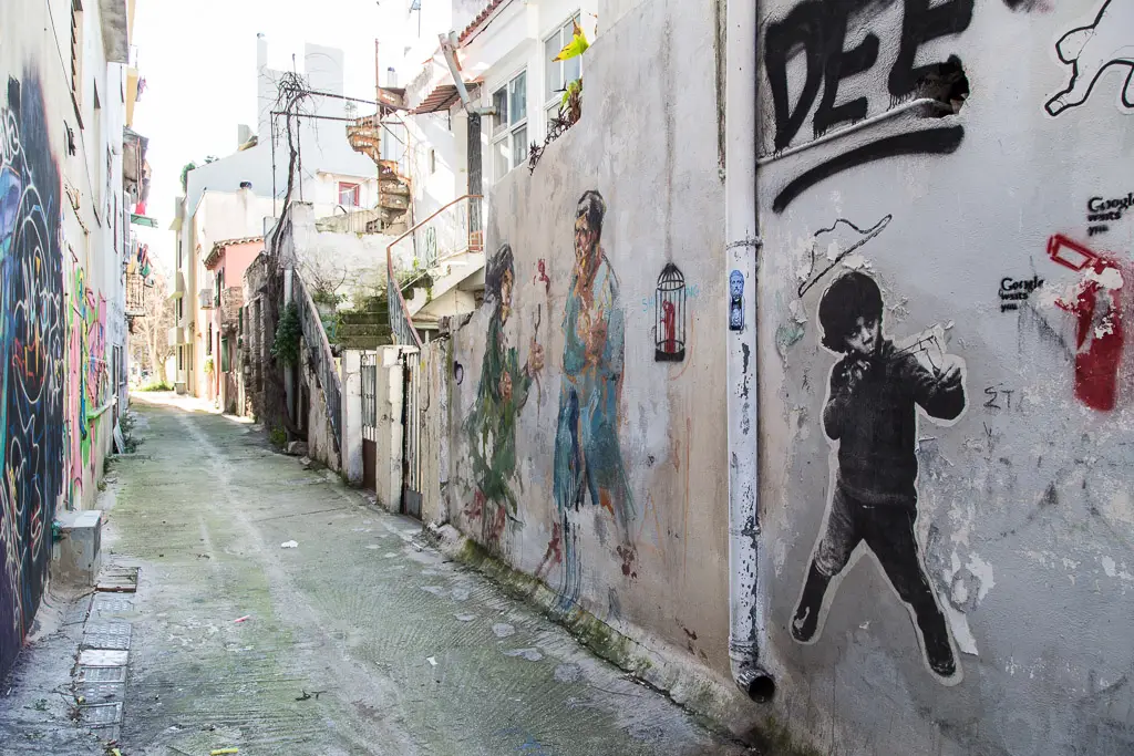 Urbane Streetart, die sich überall in Athen ausbreitet, Meinung und Stimmung ausdrückt und auf Missstände aufmerksam macht.