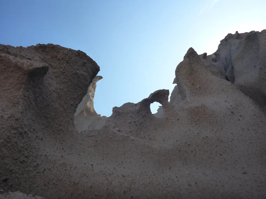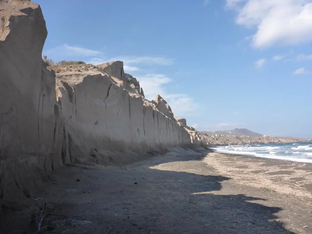 Wer festen Boden unter den Füßen bevorzugt, kann sich auch auf das gut ausgebaute Busnetz verlassen. Man erreicht jede Sehenswürdigkeit der Insel, wie zum Beispiel den Roten Strand, oder das Städtchen Oia, das man am besten zum Sonnenuntergang aufsucht. Doch auch zu Fuß kommt man weit. Gerade in der Menschenleere des Winters, wo die Sonne trotz der kühlen Jahreszeit noch kräftig scheinen kann, eignet sich Santorin ausgezeichnet gut für Wanderer. Wer bei Katheradou den Blick vom türkisblauen Meer weg auf die Landseite hin richtet, wird Zeuge von bizarren Sandformationen entlang der Küste. Sie muten wie harte, wettergeschliffene Felsen an, kratzt man an ihnen, so bröckelt jedoch der Sand in die Hände. Touristen kommen kaum an diesen Strand, weshalb er ein wahrer Geheimtipp ist!