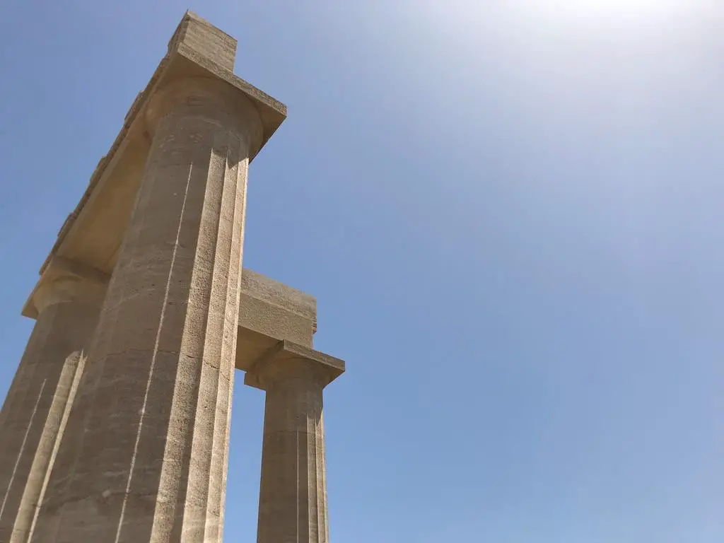 Hier sieht man Säulen der Akropolis von Lindos.