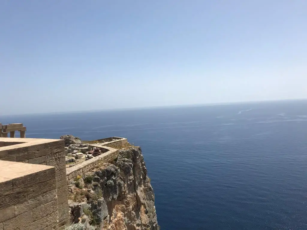 Ein Blick auf eine Mauer der Akropolis in Lindos.