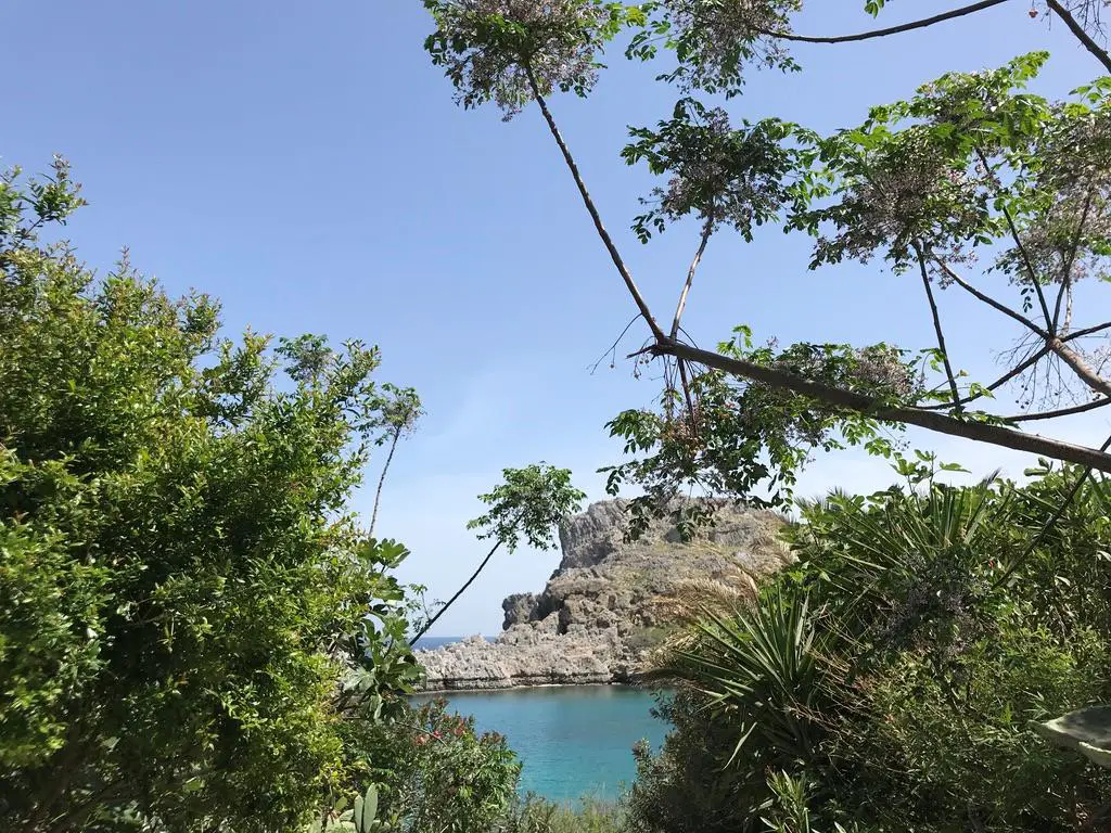 Durch die Pflanzen in der Stadt erspäht man einen Blick in die Paulusbucht.