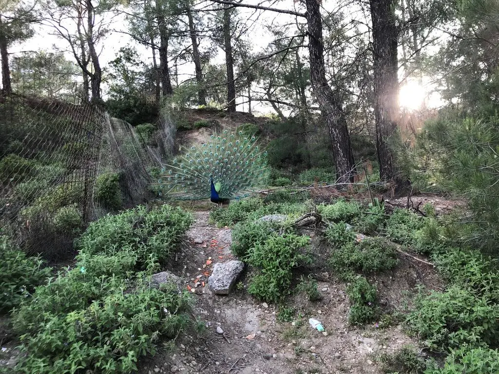 Bei den Epta Piges kann man farbenfrohe Pfaue sehen.