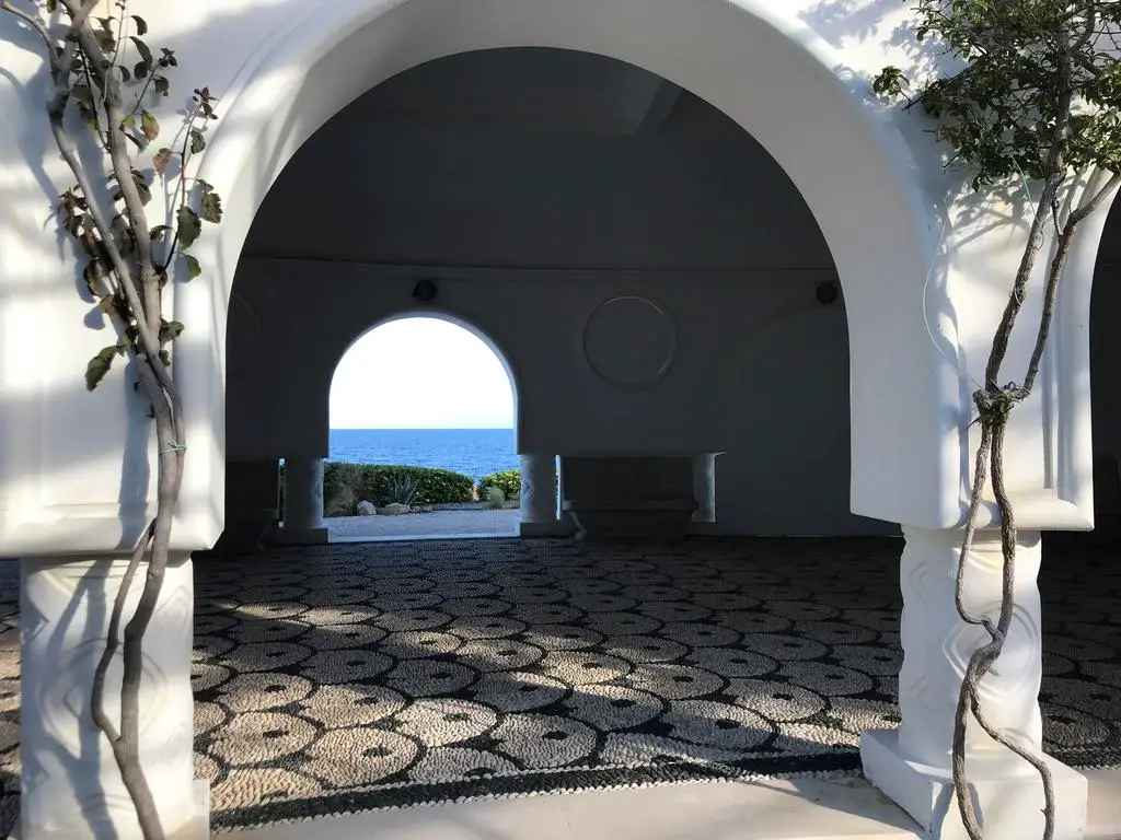 Der Ausblick auf das Meer durch die alte Therme.