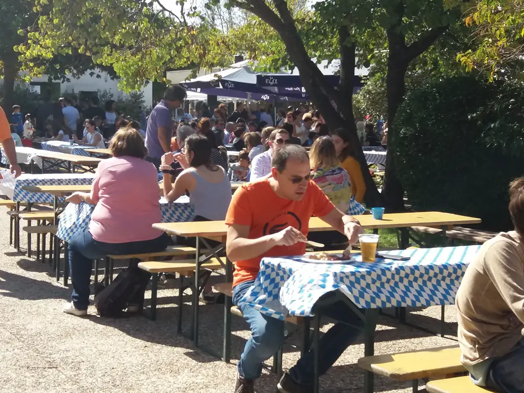 Wie jedes Jahr gab es reichlich Würstchen, köstlichen Kartoffelsalat sowie Sauerkraut und Brez‘n; für die etwas Gemütlicheren unter den Besuchern wurden außerdem Kaffee und Kuchen angeboten. Das tolle Kinderprogramm mit Kletterwand, Hindernis- und Balancierstrecke machte fast neidisch auf die Kleinen, zum Trost gab es für die Großen jedoch reichlich Bier. Wer ein Erinnerungsstück an den unterhaltsamen Tag haben wollte, konnte sich ein Los für die Tombola kaufen und auf einen netten Gewinn hoffen, oder sich selbst und seinen liebsten ein Lebkuchenherz um den Hals hängen, das übrigens genauso gut aussieht, wie es schmeckt. Auch die Griechenland Zeitung war vertreten: sowohl mit Mitarbeitern als auch in Papierform. Auf die Beine gestellt wurde das gesamte Fest durch die Mithilfe vieler freiwilligen Helfer, die dieses familiäre Fest mit viel Spaß und Atmosphäre ermöglichten. Der Erlös der Einnahmen fließt wie in jedem Jahr in das Studienstipendienprogramm für Schülerinnen und Schüler der DSA.