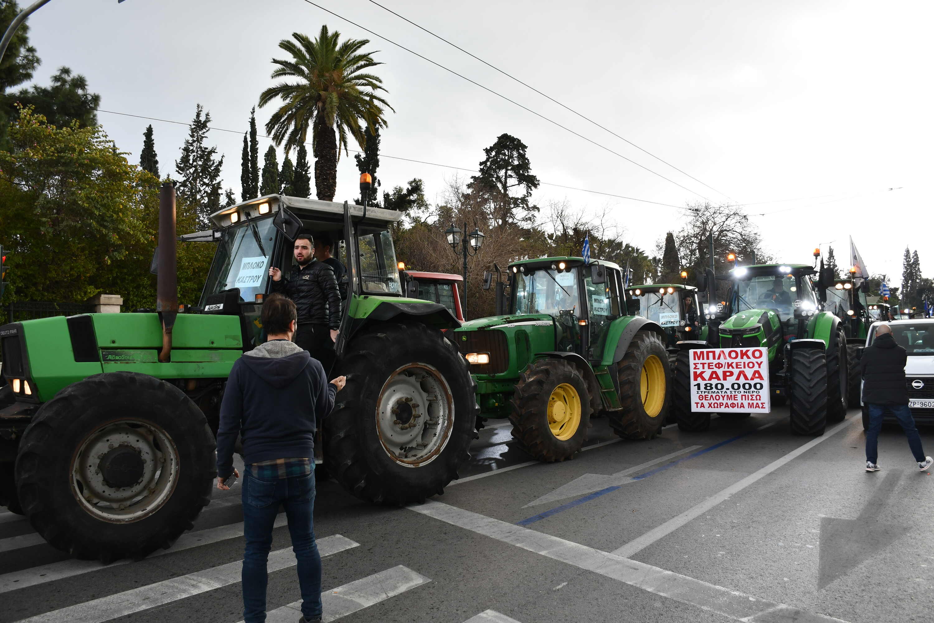 Großaufgebot protestierender Bauern mit Traktoren in Athen