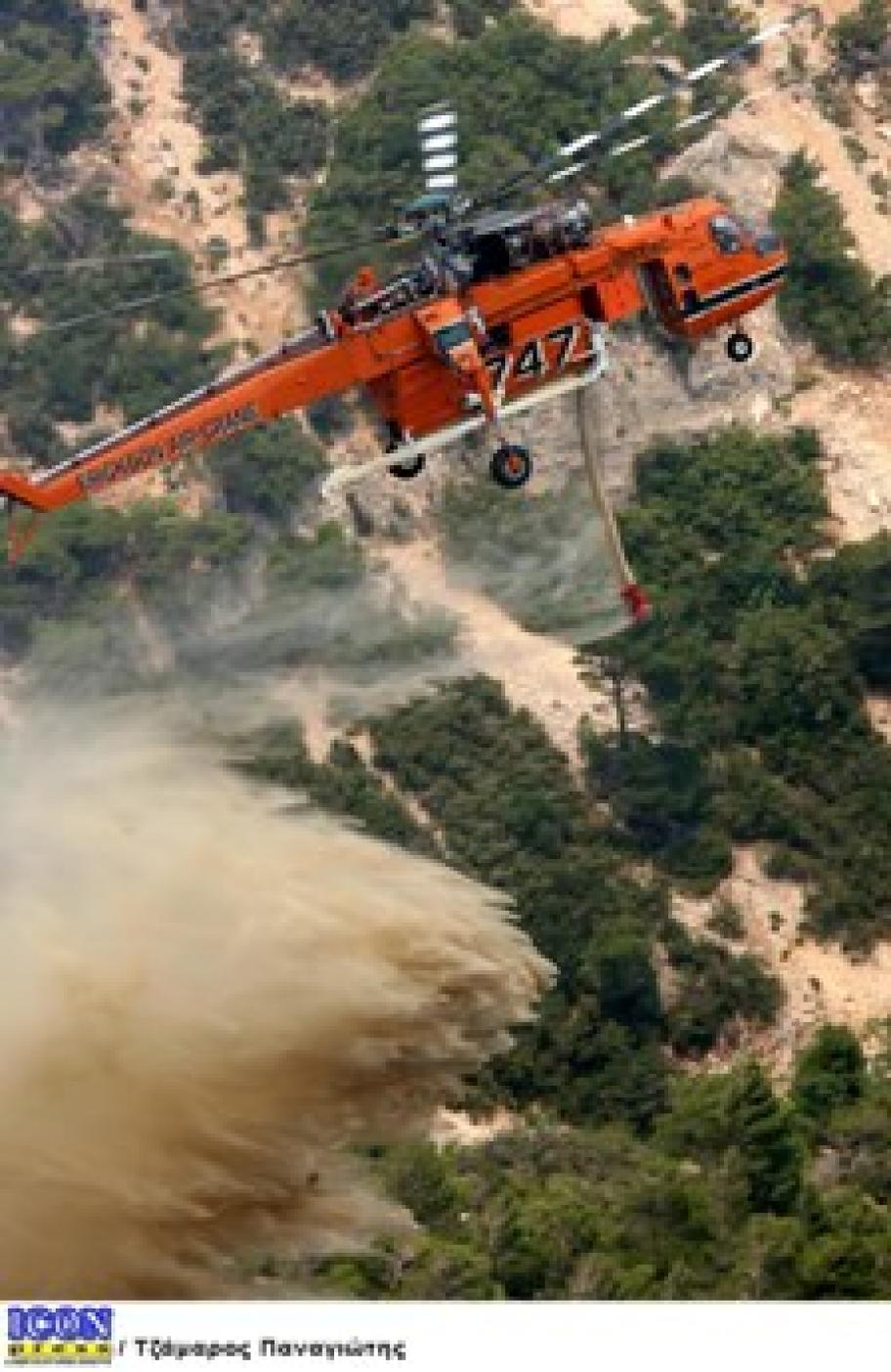 Flugzeuge und Hubschrauber, die zur Bekämpfung der Waldbrände in