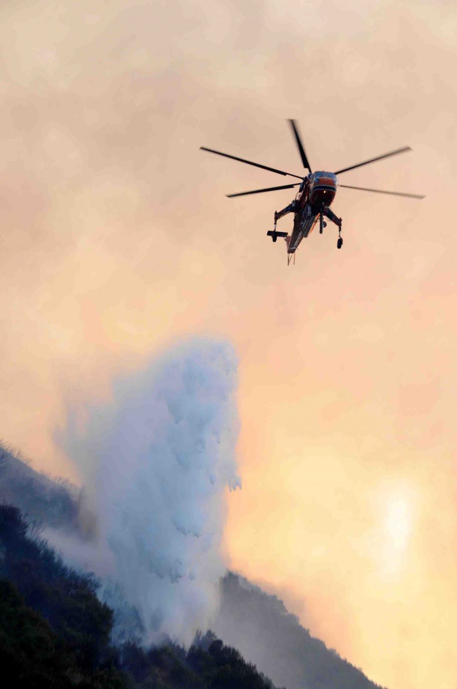 Hubschrauber im Einsatz. Das Feuer ist derzeit im Abklingen. Auch