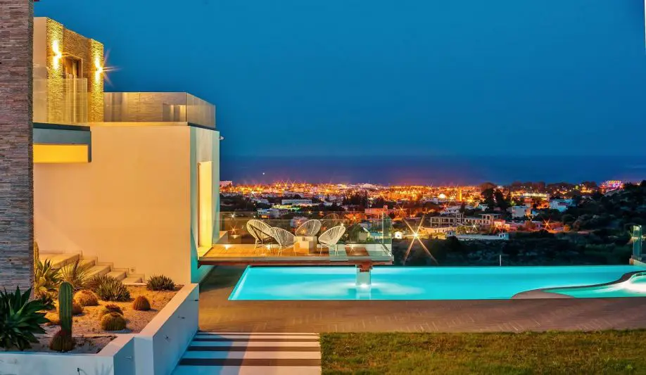 1. In der Nähe von Kalithies im Nordosten von Rhodos steht diese moderne Villa für 2,4 Mio. Euro zum Verkauf. Auf den rund 550 Quadratmetern Wohnfläche verteilen sich 6 Zimmer und 3 Bäder mit Panoramafenstern, die einen Blick auf die Hügellandschaft und das Meer bieten.