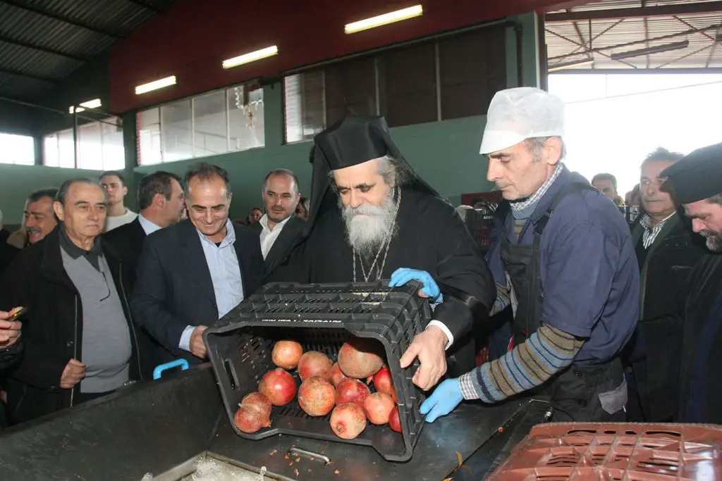 Das unten stehende Foto zum Thema Firmenschließung / Firmengründung (© Eurokinissi) entstand ebenfalls im Januar 2016. Es zeigt die feierliche Einweihung einer Produktionsstrecke zur Erzeugung und Abfüllung von Granatapfelsaft auf der Peloponnes (Präfektur Ilia).