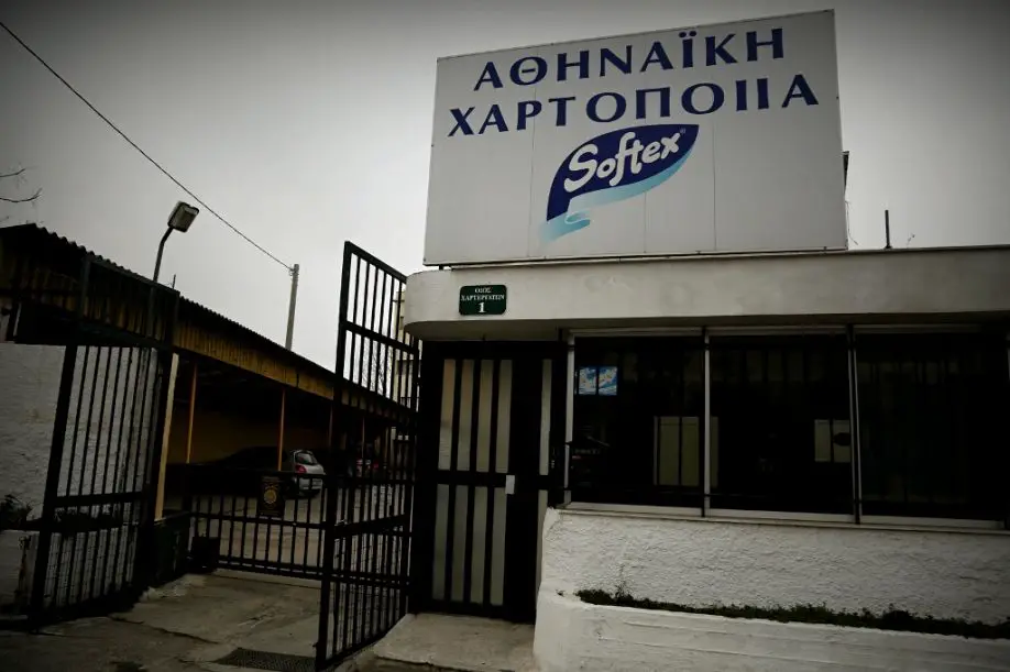 Unser Foto (© Eurokinissi) zeigt das Werk „Athener Papierproduktion“ nach seiner Schließung im Januar 2016. Das Unternehmen produzierte u. a. Papiertaschentücher der Marke „Softex“. Es gehörte zur internationalen Bolton Group mit Sitz in Italien. Anlass für die Schließung war ein Brand in einer der Produktionshallen.