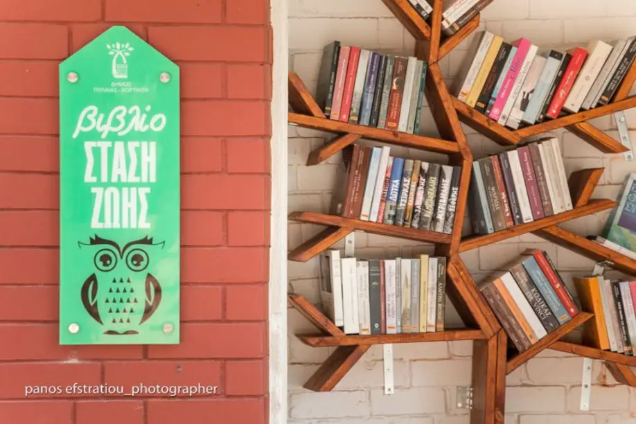 Die öffentliche Bibliothek ist eine Initiative der Gemeinde Pilea-Chortiatis und wurde in Zusammenarbeit mit dem Bürgerverein von Filyro umgesetzt. Das Prinzip ist simpel: Wartende nehmen sich ein Buch und lesen darin entweder, bis der Bus kommt, oder nehmen es mit und stellen es zurück, sobald sie es gelesen haben. Angefangen hat das Projekt mit einem einzigen „Bücherstopp“; mittlerweile konnte es durch die Initiative der Bürger auf fünf Stationen erweitert werden. Ziel ist es, in Zeiten des Smart-Phones die Menschen wieder mehr zum Lesen zu bewegen, sagte dazu Ignatios Kaiezidis, der Bürgermeister von Pylaia-Choriatis.
