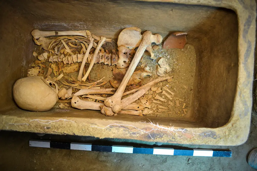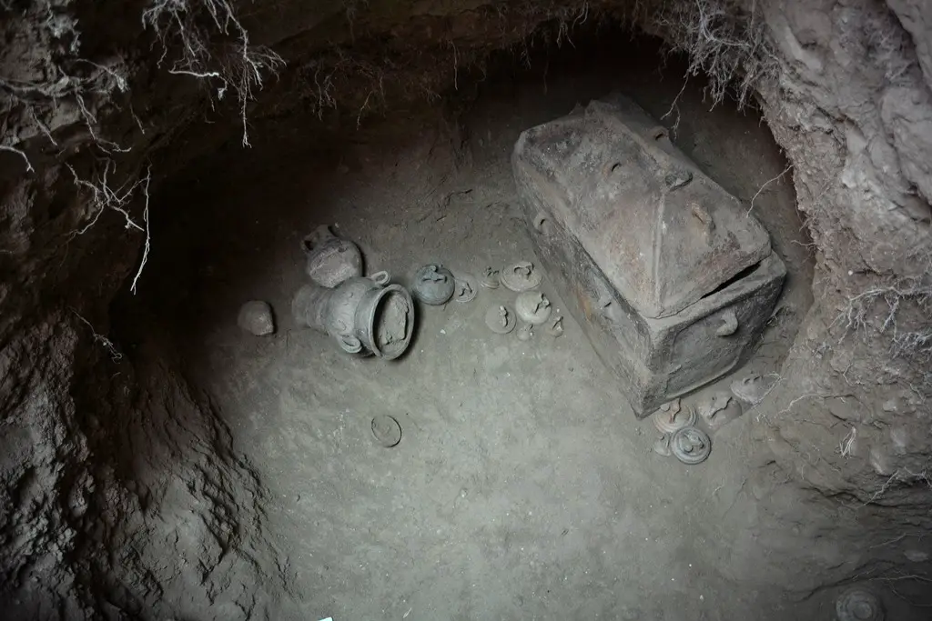 Auch dies ist in einem noch gut erhaltenen Zustand. Bestattet wurden er und ein weiterer erwachsener Mann, dessen sterbliche Überreste in einer Nebenkammer beigelegt worden waren, zwischen 1400 und 1200 vor Christus. Das Grab hat eine Breite von 1,2 Metern und liegt in einer Tiefe von 2,5 Metern.