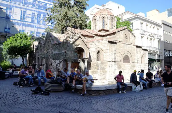 An der Kapnikarea-Kirche im Herzen Athens gibt es immer viel zu sehen (siehe unsere Bildstrecke dazu) – und oft auch viel zu hören (siehe unser Video dazu). Heute spielt eine Rembetiko-Gruppe auf: ohne technische Verstärker, bitteschön!