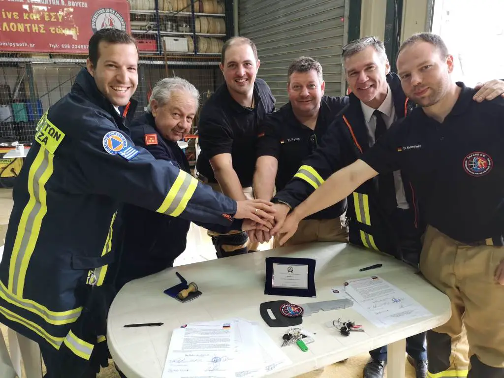 Neos Voutzas sowie die angrenzenden Orte Nea Makri und Mati wurden von den verheerenden Waldbränden im Sommer 2018 hart getroffen; rund einhundert Menschen verloren ihr Leben. Die Spende der Löschfahrzeuge ist der Abschluss eines Projekts, das als Reaktion auf diese Katastrophe ins Leben gerufen worden war. Durch den Erhalt der beiden Fahrzeuge erfährt die Region eine nennenswerte Aufwertung des Brandschutzes.