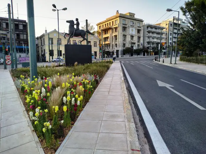 Unser Foto (© GZak) zeigt den frischen Asphalt und die neuen Blumen am Alexander-Denkmal in Athen Unser Foto (© GZak) zeigt den frischen Asphalt und die neuen Blumen am Alexander-Denkmal in Athen