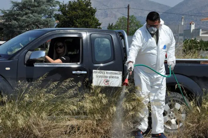 Auslöser für die August-Aktion in Nordgriechenland war das Ergebnis von Untersuchungen des Gesundheitsamtes Zentralmakedoniens, die eine deutliche Zunahme der Mückenlarven registrieren mussten. Die zuständigen Ministerien für Agrarentwicklung sowie Gesundheit erteilten anschließend die Genehmigungen für die Pestizid-Anwendung. Als Vorsichtsmaßnahmen durfte sie jedoch nur in unbewohnten Gebieten sowie in einer Mindestentfernung von zwei Kilometern von Siedlungen erfolgen. Die örtliche Bevölkerung wurde rechtzeitig darüber informiert, ihre Tiere während der gesamten Zeit der Besprühungen von dem betroffenen Gebiet fernzuhalten. (GZmf)