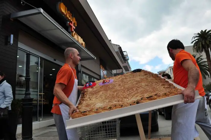 Das stolze Backwerk wog 70 Kilo, war 4,20 Meter lang und 1,80 Meter breit: Es handelt sich um die wohl größte Lagana, die in Griechenland je gebacken wurde. Dafür verantwortlich zeichnete am Montag (27.2.) eine Bäckerei in Chania auf Kreta.