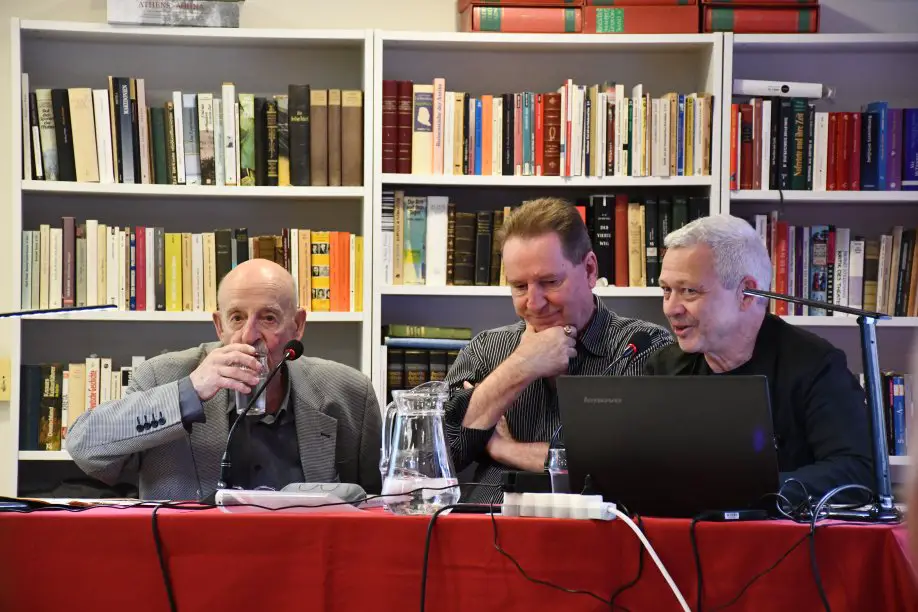 Die beiden Verleger Jan Hübel und Robert Stadler – gleichzeitig Herausgeber der GZ – lasen aus diesem eben erschienenen Buch, gingen auf dessen Entstehungsgeschichte ein und beantworteten dem Publikum viele Fragen, wobei es zu einem anregenden Gedankenaustausch kam. Bereits in der Diskussion wurde deutlich, dass dieses neueste Werk aus dem GZ-Verlag ein weiterer wichtiger Beitrag zum Verständnis der deutsch-griechischen Beziehungen ist.