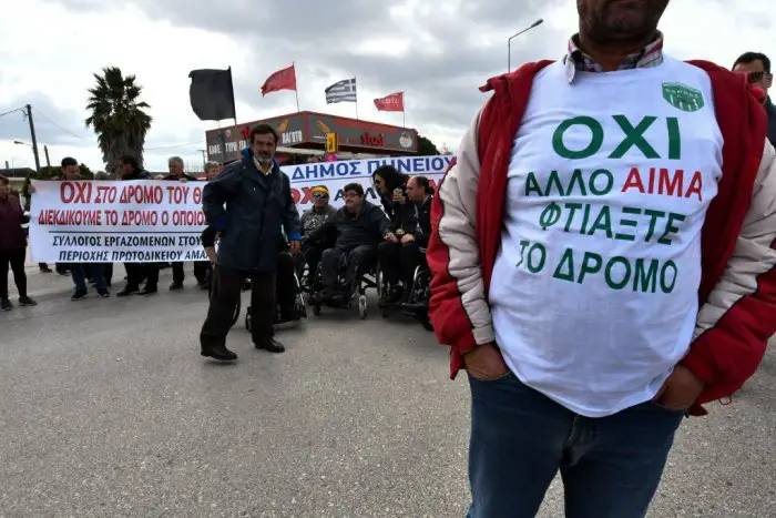 Vertreter der Gemeinden Elis und Messini protestierten in der Vorwoche auf dem zentralen Athener Syntagma-Platz für den sofortigen Bau einer sicheren Straßenverbindung zwischen Pyrgos und Tsakonas im Westen der Peloponnes und deponierten danach ihre Forderungen im Büro des Premierministers.