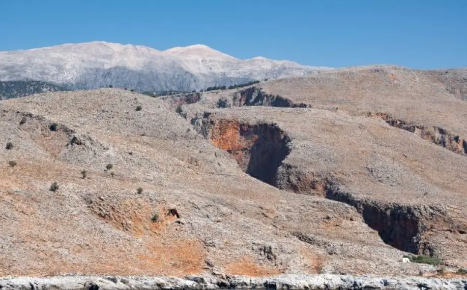 Eine Provinzstraße oberhalb der Kourtaliotis-Schlucht in der kretischen Region Rethymno muss wegen Steinschlägen oder Erdrutschen immer wieder gesperrt werden und stellt eine Gefahr für Bewohner und Besucher dar.
