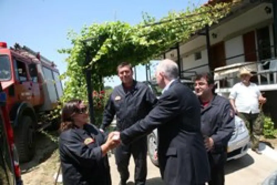 Inzwischen haben 3.077 Opfer des schweren Bebens auf der Peloponnes, das sich am 8.Juni in der Nähe von Patras ereignete hatte, die vom Staat versprochene Sofortunterstützung in Höhe von 3.000 Euro erhalten. 38 der Opfer bekamen die ihnen zustehenden 10.000 Euro. Am Sonntag wird der Staatssekretär im Bildungsministerium, Andreas Lykourentzos, die Erdbebenregion besuchen. Er wird u.a. Rechenschaft über die Kosten und den Fortgang der Instandsetzungsarbeiten an den betroffenen Schulgebäuden legen; viele Schulen in der Region wurden bis zum Ende des Schuljahres nicht mehr geöffnet. Bereits am Wochenende hatte der Vorsitzende der großen Oppositionspartei PASOK, Jorgos Papandreou (siehe Foto), den betroffenen Gebieten einen Besuch abgestattet, um sich vor Ort ein Bild von der Lage zu machen. (Griechenland Zeitung / eh)