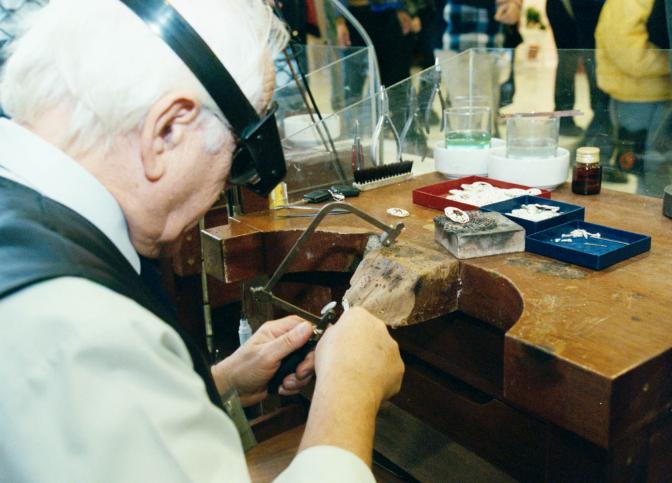 Ilias Lalaounis kam 1920 in Athen zur Welt. Schon sein Großvater Xenophon Zafiriou war Uhrmacher und Juwelier im zentralgriechischen Amfissa. Die von ihm fabrizierte Kirchturmuhr soll so gut gewesen sein, dass die Deutschen sie als Kriegsbeute mitgenommen hätten. Nachdem er seine Studien als Kaufmann und Jurist kriegsbedingt abbrechen musste, begann Lalaounis bei seinem Onkel, dem Juwelier Efthymios Zolotas, zu arbeiten und übernahm 1941 die Leitung des Unternehmens zusammen mit seinem Cousin Xenophon Zolotas, einem herausragenden Volkswirtschafter, der 1989 kurz Premierminister von Griechenland werden sollte. In jener Zeit begann er auf einen Tipp seines Freundes und späteren griechischen Präsidenten Konstantions Tsatsos hin, mit altgriechischen und byzantinischen Vorbildern und Techniken zu experimentieren. Auf dieser griechischen Linie baute der internationale Ruhm seines Hauses auf, nachdem Lalaounis sich Anfang der 1960er Jahre selbständig gemacht hatte. Schmuck von Lalaounis trugen und tragen unter anderem Jackie Kennedy-Onassis, die Witwe des Schahs von Persien, Farah Diba Pahlavi, Barbara Streisand und Königin Sophia von Spanien. 1998 übertrug Lalaounis seine Geschäfte an seine vier Töchter. (Griechenland Zeitung / ak, Foto: Eurokinissi. Die Aufnahme entstand im Museum Lalaounis.)