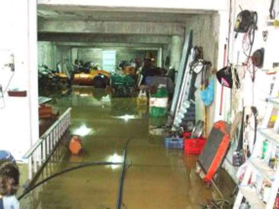 Evakuierungsmaßnahmen, überschwemmte Häuser und Geschäfte, sowie