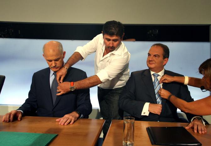 Griechenland / Athen. Die Fernsehdebatte der Parteivorsitzenden der