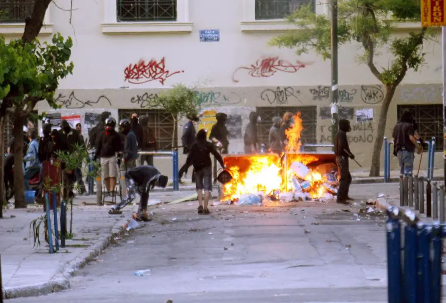 In Thessaloniki explodierte in der Nacht von Mittwoch auf Donnerstag ein Sprengmechanismus in den Büros der Regierungspartei PASOK im Stadtteil Neapolis. Durch die Detonation entstand Sachschaden, verletzt wurde niemand. (Griechenland Zeitung / eh; In Exarchia kommt es immer wieder zu Zwischenfällen mit autonomen Gruppierung, wie hier am Kaningos-Platz; Foto: Archiv, Eurokinissi).