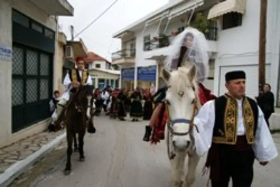 Aufnahme zeigt den traditionellen Karnevalsumzug am Kathara Deftera