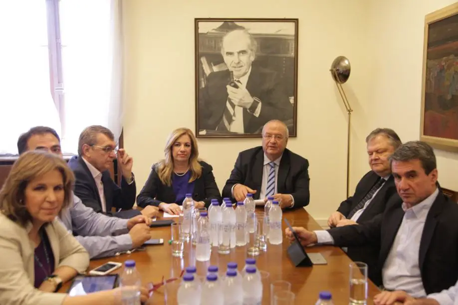 Unser Foto (© Eurokinissi) entstand während der Sitzung des Zentralkomitees der PASOK am 17. Juni. Links in der Mitte die neue PASOK-Chef Fofi Gennimata. Im Hintergrund eine Aufnahme das Gründers der griechischen Sozialisten Andreas Papandreou.