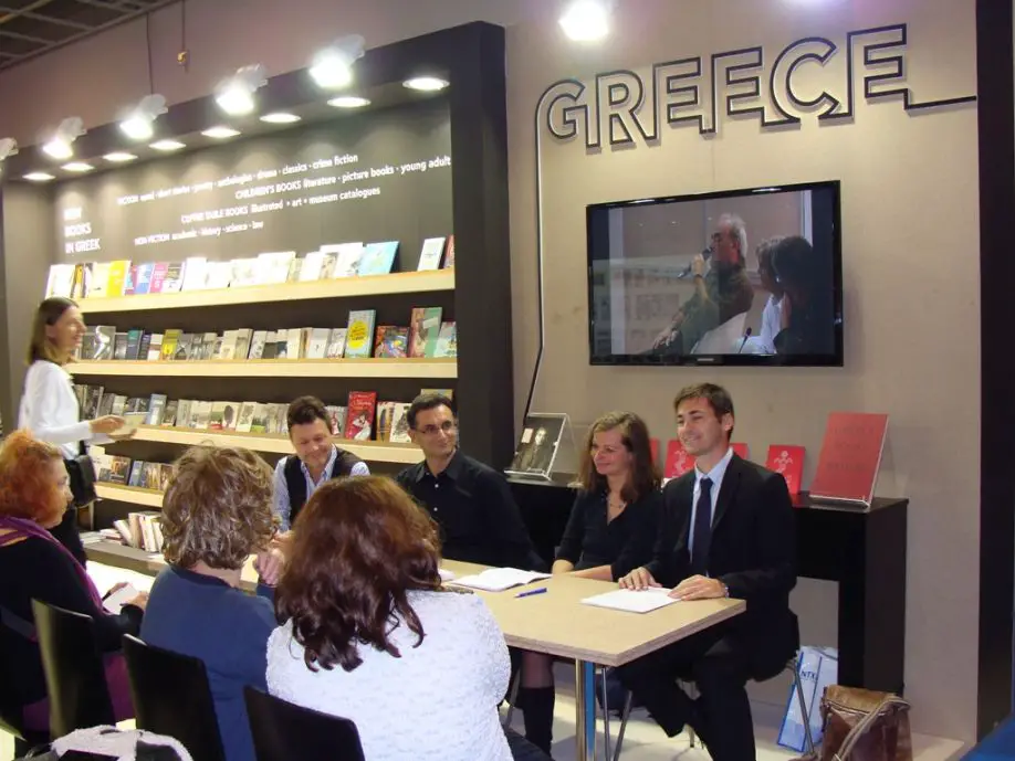 Vorgestellt wurde am vorigen Donnerstag auf der Frankfurter Buchmesse das neue Buch des Verlags der Griechenland Zeitung von Emilios Solomou „Im Sternbild der Kykladen. Koordinaten eines Ehebruchs“. Anwesend waren der Autor; die Übersetzerin Michaela Prinzinger; Nikos Psichogios, Verleger des gleichnamigen griechischen Verlages, der die Verwertungsrechte an diesem Buch hält, sowie Jan Hübel vom Verlag der Griechenland Zeitung, der das Buch jetzt in deutscher Sprache veröffentlicht hat. Anwesend bei der Präsentation waren zahlreiche Journalisten und Verleger anderer Länder sowie Nopi Chatzigeorgiou von der Hellenischen Kulturstiftung, die den Messeauftritt Griechenlands organisiert hat.