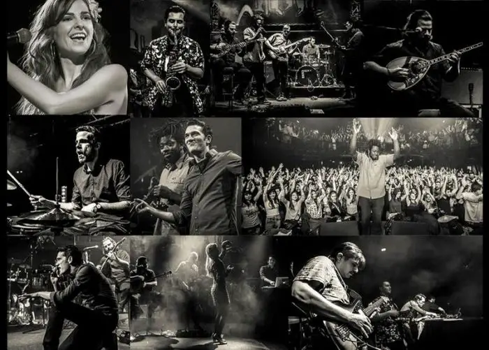 Bouzouki meets Electro Swing, Greek Roots meets Hip Hop & Mambo Big Band Orchestration, original Greek - Balkan Brass Action meets uplifting MCs & Cuban Montunos. Ihr Sound vereinigt griechische Musik der 40er, 50er und 60er Jahre mit modernen Rhythmen sowie neuen Produktions- und Remix-Techniken zu einer einzigartigen und tanzbaren Live Show.