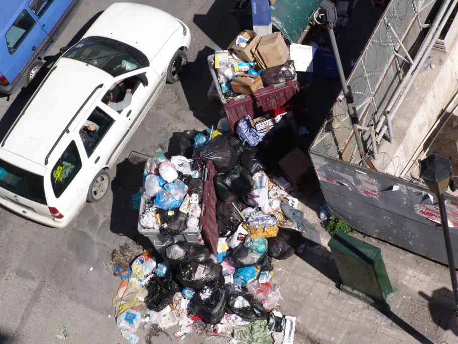 in vielen Vororten zum Teil meterhohe Abfallberge.
