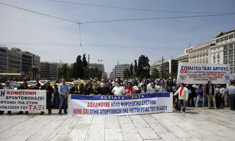 werden sich die Taxibesitzer nach einer Demo am Syntagma-Platz
