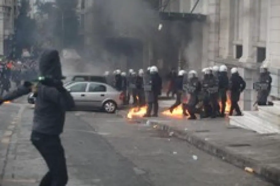 Im Umfeld der friedlichen Proteste kam es zu gewaltsamen Auseinandersetzungen zwischen mehren hundert Vermummten und der Polizei. Die Radalierer setzten zahlreiche Fahrzeuge – darunter auch zwei Polizeimotorräder – in Brand. Das Gebäude des Finanzministeriums wurde mit Molotow-Cocktails attackiert. Von aufgebrachten Menschen wurde der frühere Verkehrsminister Kostis Hatzidakis (Nea Dimokratia) geschlagen, er musste mit Blut im Gesicht in ein Krankenhaus eingeliefert werden. Zu Ausschreitungen kam es auch in Thessaloniki, der zweitgrößten Stadt des Landes. Zahlreiche Personen wurden festgenommen.