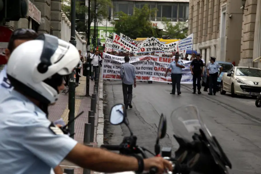 Eurokinissi; die Aufnahme entstand bei einer Kundgebung am Montag