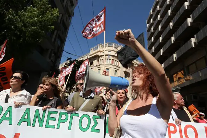 Sie protestieren gegen die Maßnahme der Arbeitsreserve. Dadurch werden die davon betroffenen Staatsdiener für acht Monate nach Hause geschickt. Sie erhalten weiterhin einen Großteil ihres bisherigen Gehaltes. In der Zwischenzeit müssen sie darauf warten, dass sich im öffentlichen Sektor ein anderer Posten für sie öffnet, auf den sie versetzt werden können. Bietet sich diese Möglichkeit nicht, werden sie nach Ablauf der achtmonatigen Frist entlassen. Die Lehrer erklären, dass die Regierung zahlreiche Schulen schließen bzw. vereinigen will, um somit eine große Zahl von Sekundarlehrern als überzählig einzustufen. Die Gewerkschaft der Sekundarschullehrer hatte im September angekündigt rollende fünftägige Streiks durchzuführen. Aufgrund der niedrigen Streikbeteiligung in der zweiten Woche, wurde diese Protestaktion auf Eis gelegt. Was die Lehrer an den Privatschulen betrifft, so wollen diese am 15. Oktober ganztägig streiken. (Griechenland Zeitung / eh, Foto: Eurokinissi)