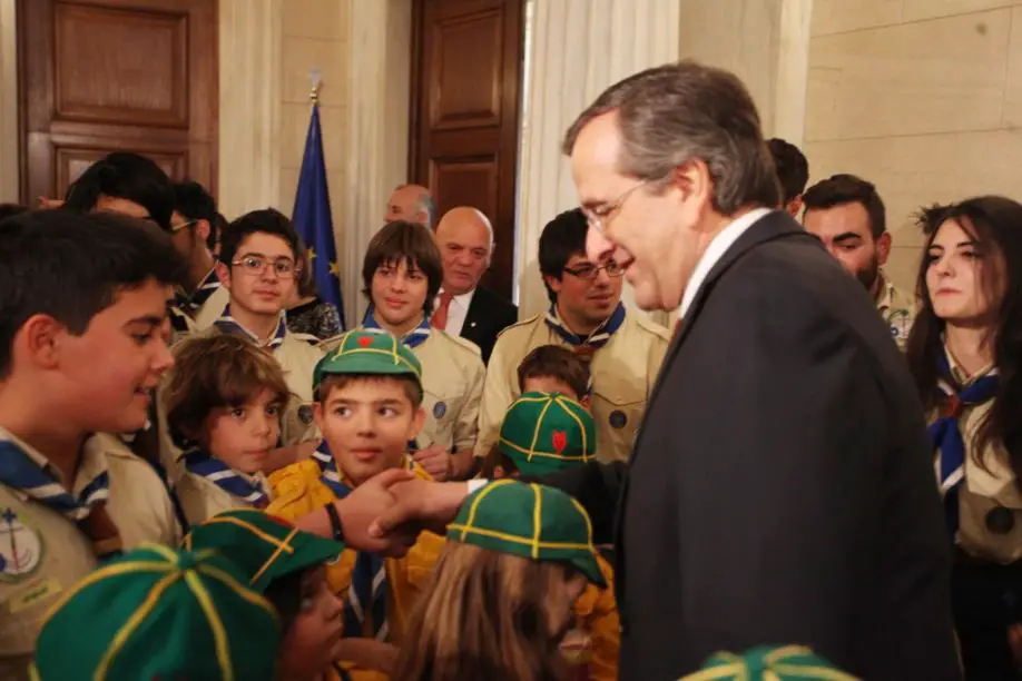 (Griechenland Zeitung / eh, Foto: Eurokinissi. Diese Aufnahme zeigt Samaras am Heiligabend, als ihm in seinem Amtssitz die Kalanta – Weihnachtskantaten – dargebracht werden.)