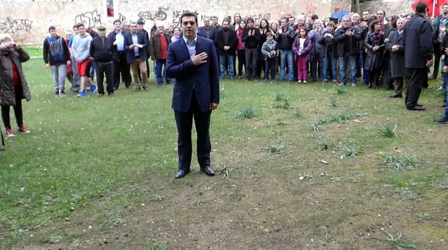 Unmittelbar nach seiner Vereidigung legte Alexis Tsipras – es war seine erste Amtshandlung als Ministerpräsident – rote Rosen am ehemaligen Schießstand von Kessariani, östlich von Athen, nieder. Dort waren während des II. Weltkrieges 600 Menschen von den deutschen Besatzern hingerichtet worden.