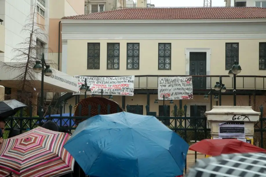 Unser Foto (© Eurokinissi) zeigt das seit Tagen besetzte Gebäude der Juristischen Fakultät in Athen.